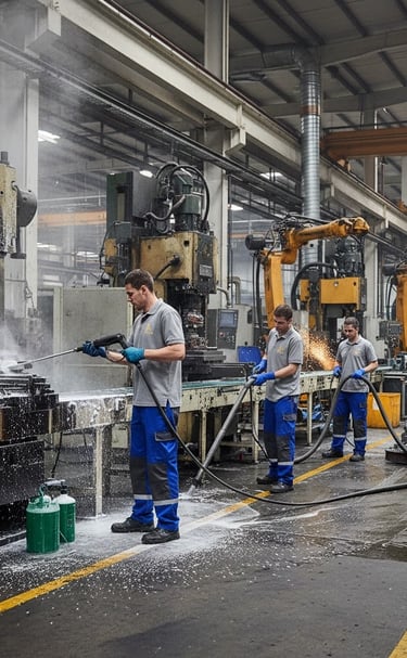 Atención especializada para plantas, fábricas y áreas de producción, con protocolos avanzados para eliminar polvo, grasa y residuos complejos, manteniendo la seguridad operativa.